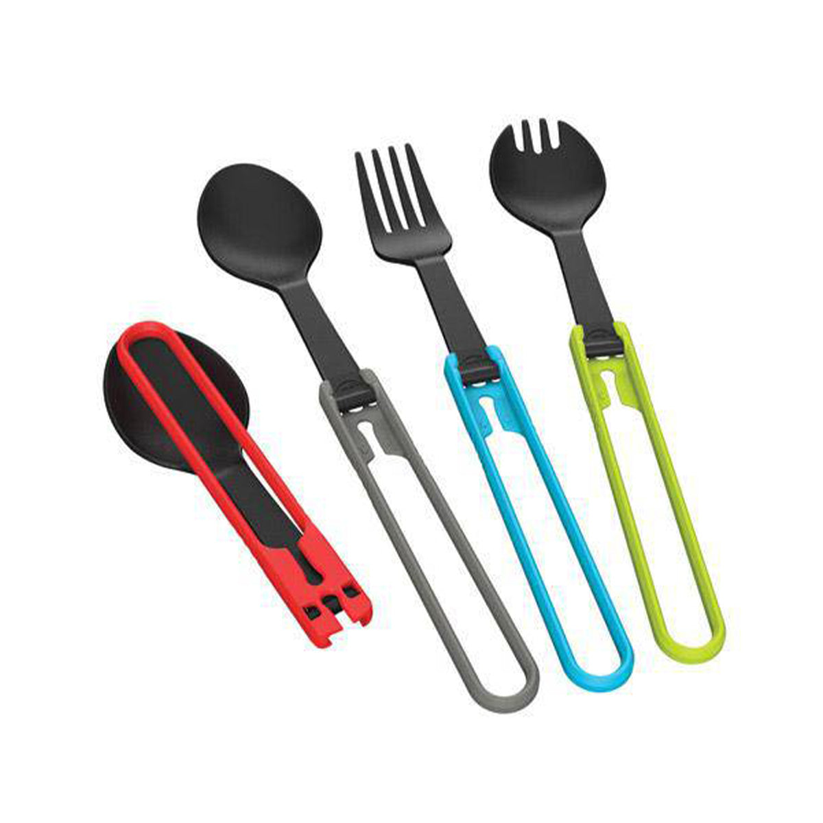 Updated with an improved pinch-to-fold locking mechanism, MSR Folding Utensils are constructed with BPA-free materials and collapse to fit inside MSR Insulated mugs for efficient packing. Different color options coordinate with our Mugs and DeepDish-ware so you can keep track of your own set.